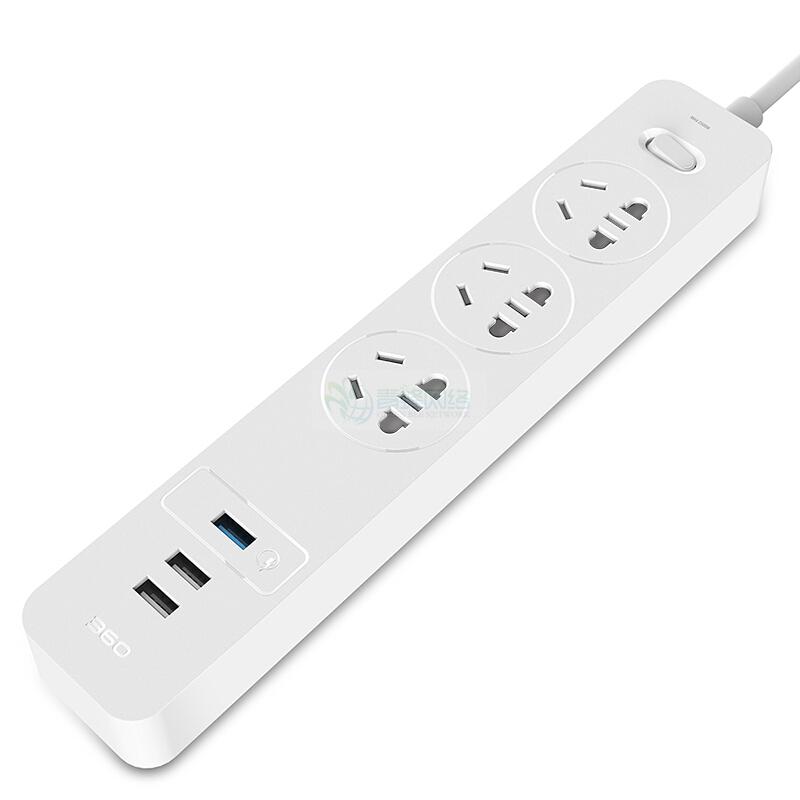 安全插线板 3USB快充接口+3插孔 8重安全防护插座/插排...